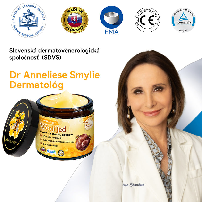 "Ako dermatológ vždy bolo mojou vášňou nájsť účinné, prirodzené riešenia kožných problémov. Po rozsiahlom výskume a testovaní mojím laboratórnym tímom, ako aj klinických skúškach s viac ako 2000 účastníkmi som zistil, že včelí jed je silná prírodná zložka, ktorá môže pomôcť pri rôznych kožných problémoch. To ma viedlo k vyvinutiu 𝐃𝐨𝐫𝐦𝐨𝐫𝐧𝐚® 𝐕č𝐞𝐥í 𝐣𝐞𝐝 𝐊𝐫é𝐦 𝐧𝐚 𝐨𝐛𝐧𝐨𝐯𝐮 𝐩𝐨𝐤𝐨ž𝐤𝐲 - multifunkčné riešenie určené na prirodzené a efektívne zmiernenie problémov pleti - Dr. Kylea Allora, MD. Dermatológ